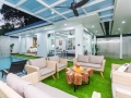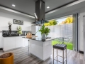 Spacious open plan living area with high ceiling, open plan dining area and fully Appliances western kitchen and big folding door to pool access.