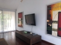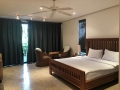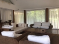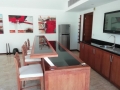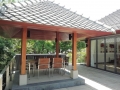 On the upper level there is a beautiful spacious living quarters that includes a living room, dining room and huge western kitchen. The kitchen is decorated in brown and beige tones with modern appliances and a large breakfast bar with stools for casual dining. Elegantly decorated in Thai Modern, the living room over looks the super large terrace and has excellent views of the pool and green view which gives the feeling of swimming off into space.Parking is available for 2 cars.