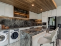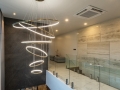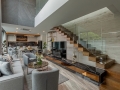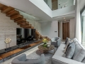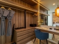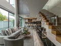 Premium natural materials are used throughout the home, including warm-toned wood finishes and distinctive marble surfaces that reflect timeless elegance. Hidden lighting is carefully integrated to create a soft, relaxing atmosphere in the evening, adding depth and warmth to each space.