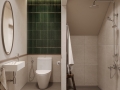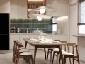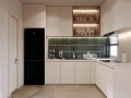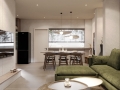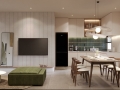 The living area is well-zoned and seamlessly connected to a compact kitchen, creating a practical flow for daily life. Warm ambient lighting is thoughtfully integrated to enhance depth and comfort, while carefully selected materials add a modern yet inviting atmosphere.