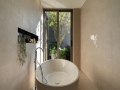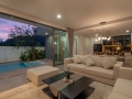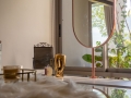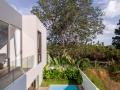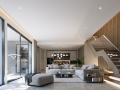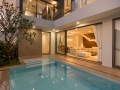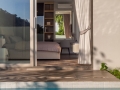 Floor-to-ceiling glass doors open directly to the private swimming pool and outdoor terrace, extending the living space and creating a seamless indoor–outdoor connection. The result is an environment that feels open, airy, and free, while still maintaining a high level of privacy.