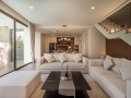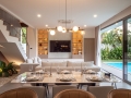 From the moment you step inside, the atmosphere reflects a strong high modern character in every detail. The grand entrance hall features soaring ceilings and full-height glass panels that invite natural light deep into the home, creating a bright and expansive ambiance. The open-plan layout seamlessly connects the living area, dining space, and kitchen, allowing for effortless flow and functional living. Clean architectural lines, minimalist surfaces, and premium materials enhance the sense of clarity, balance, and sophistication that defines high modern design.