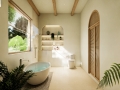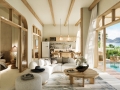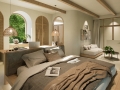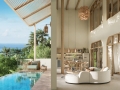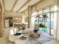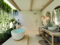 Each villa offers 2–3 bedrooms and 2–3 bathrooms, thoughtfully arranged to create a harmonious flow between indoor and outdoor living. The open-plan living and dining areas are designed as the heart of the home, opening directly onto a private swimming pool and sun terrace. Floor-to-ceiling glass doors allow natural light to pour in throughout the day, creating a bright and airy atmosphere while framing views of the surrounding greenery. The seamless transition between interior and exterior spaces encourages a relaxed tropical lifestyle, perfect for both quiet mornings and sunset gatherings.
