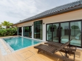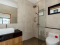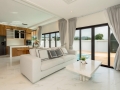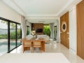 The living space features high ceilings and expansive windows, allowing sunlight to filter gently throughout the home while maintaining a sense of privacy. The kitchen is both functional and elegant, positioned to overlook the pool area, making it perfect for entertaining guests or enjoying quiet family evenings. Each of the three bedrooms is generously sized, offering comfort and privacy, with direct pool access from selected rooms. The master suite is designed as a peaceful retreat, complete with a spacious ensuite bathroom and carefully selected finishes that create a calm and contemporary atmosphere.