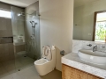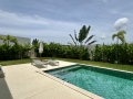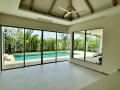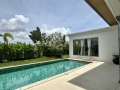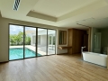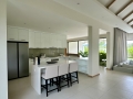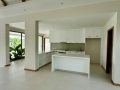 The villa offers four spacious bedrooms and three bathrooms, with well-appointed interiors that prioritize comfort and privacy. Each bedroom is generously sized, featuring large windows that frame views of the landscaped gardens or pool area. The master suite provides direct pool access, offering a calm retreat within the home. A fully equipped Western-style kitchen connects effortlessly to the dining space, making it practical for everyday living and entertaining guests.