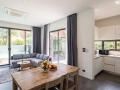 The kitchen is fully equipped and positioned conveniently beside the dining area, making it practical for daily living and entertaining guests. Both bedrooms are generously proportioned, each with its own bathroom for added privacy and comfort. The master bedroom opens directly to the pool area, offering a calm retreat where you can start your mornings with a refreshing swim or unwind in the evening in your own private space.