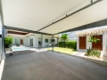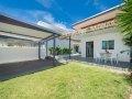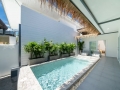 The outdoor space is centered around a private saltwater swimming pool, offering a tranquil setting to unwind. The property also includes private on-site parking and is sold fully accessible for immediate use or rental potential.