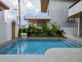 At the heart of the home, a serene private swimming pool is framed by lush tropical greenery, offering a peaceful retreat just steps from your living room. Large sliding glass doors blur the line between indoor and outdoor living, allowing natural light to pour in and creating a bright, airy atmosphere throughout the day.
