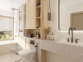 Interiors reflect a refined modern aesthetic with clean lines, soft neutral tones, and high-quality materials. The fully equipped kitchen is designed for both practicality and style, making it an inviting space for cooking and gathering. Bedrooms are spacious and serene, each offering a private retreat with large windows, built-in storage, and well-appointed bathrooms that evoke a spa-like feel.