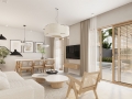 The design concept embraces natural light, open-plan living, and a seamless connection between indoor and outdoor spaces. Expansive glass doors invite sunlight into the living and dining areas, while also framing views of the private swimming pool and landscaped garden. The atmosphere is calm, airy, and effortlessly elegant—perfect for both everyday living and entertaining guests.