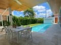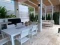 Outdoor living is designed for both relaxation and entertaining, with a private swimming pool and jacuzzi, outdoor kitchen with BBQ, and a covered dining and lounge area surrounded by tropical landscaping.