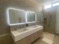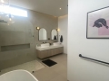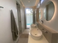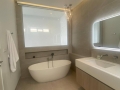 Upstairs, the villa offers three well-appointed bedrooms. The master bedroom includes a king-size bed, terrace access, and a large bathroom with both bathtub and shower. The second bedroom is also ensuite with a king-size bed, while the third bedroom has terrace access and shares the same high-quality finishes. All bedrooms include built-in wardrobes and ample storage.