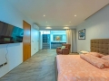 Step into a world where boundaries between interior comfort and outdoor serenity disappear. The concept of this villa embraces Open-Air Elegance, focusing on spaciousness, natural light, and harmonious flow throughout the home. At the heart of the property lies an expansive living area bathed in sunlight through clerestory windows and enhanced by soaring ceilings, creating an atmosphere of grandeur and tranquility. Refined stone flooring in soft grey tones, combined with warm wooden accents and minimalist finishes, gives the interiors a timeless and sophisticated character.