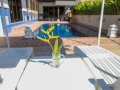 The heart of the property is its stunning private pool, positioned as a central feature of the home and surrounded by a wide sun terrace. This outdoor haven is ideal for morning coffee, afternoon relaxation, or entertaining guests under the tropical sky. The surrounding garden adds privacy and greenery, enhancing the peaceful resort-style ambiance that defines the property.